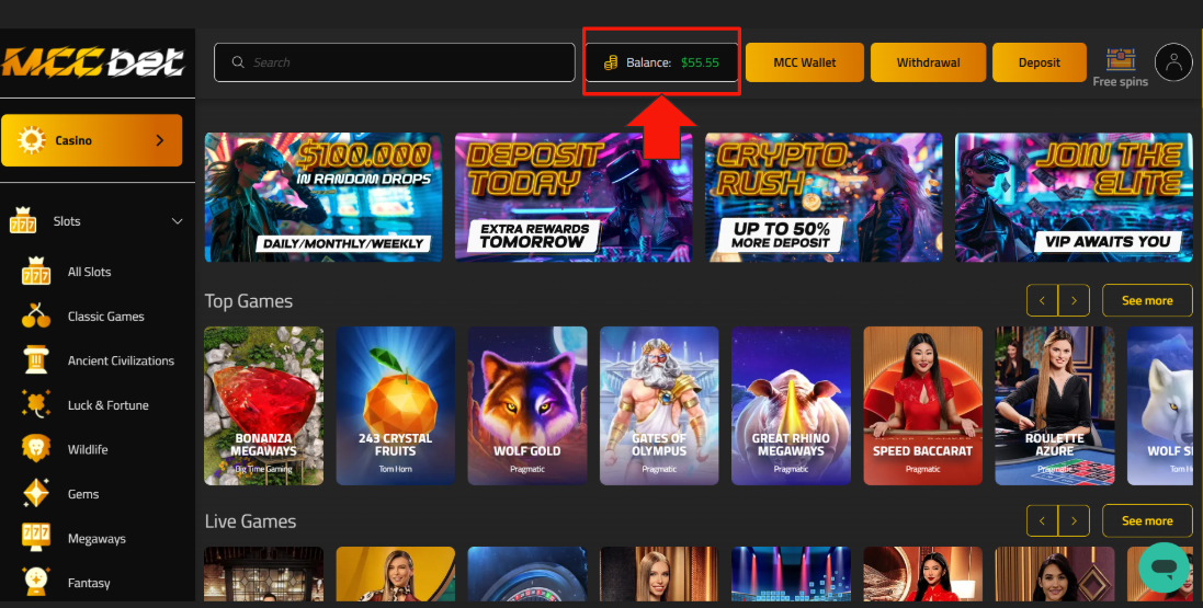 Depositing funds into your MCC Bet account is fast, simple, and secure. With multiple payment options, you can choose the method that works best for you. Enjoy the flexibility to start playing your favorite games quickly without any hassle.