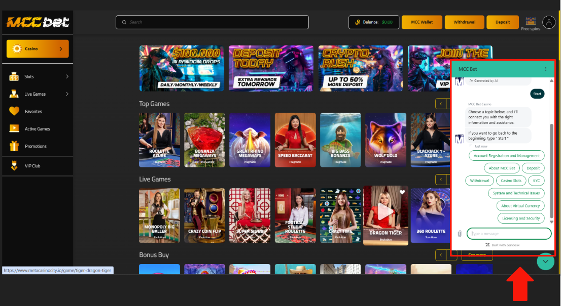 The MCC Chatbot is here to help you get quick answers to frequently asked questions. Whether you need assistance with deposits, withdrawals, or general inquiries, the chatbot provides instant support, ensuring you have all the information you need at your fingertips. For a seamless and efficient experience, simply ask and get the answers right away!