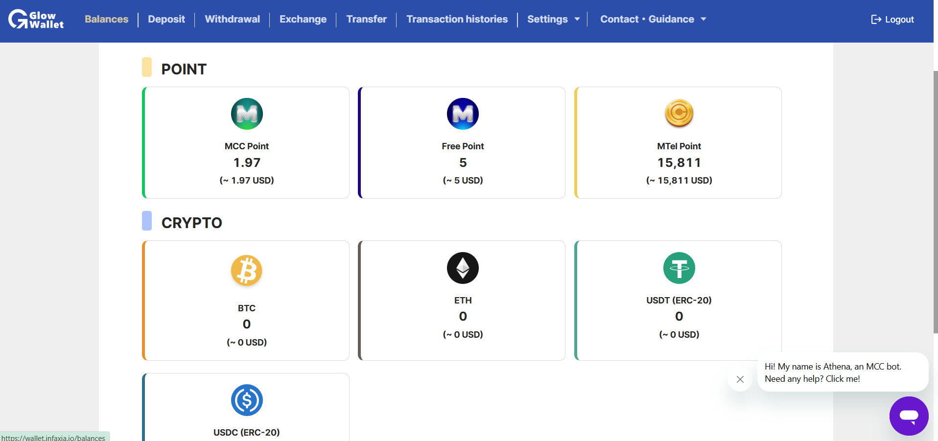 3. Glow Bank Wallet: Accepted Currencies