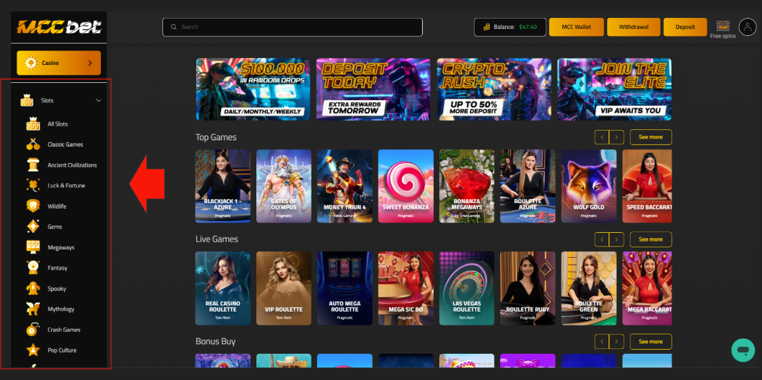 MCC Games offers a wide variety of exciting options, from thrilling slot machines to immersive live games. Whether you enjoy classic casino games or real-time action with live dealers, there's something for every player. Experience nonstop entertainment and big winning opportunities at MCC Bet.